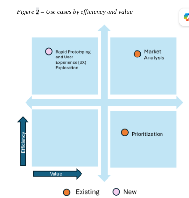 Text Segements Recent rapid advances in GenAI have sparked significant interest in its applications for product management. Its content generation capabilities empower product managers to accelerate exploration and execution. For instance, GenAI enables the instant creation of mockups, UI elements, and animated demos, drastically shortening design cycles. This facilitates rapid ideation, validation, and iteration, significantly enhancing product discovery.
